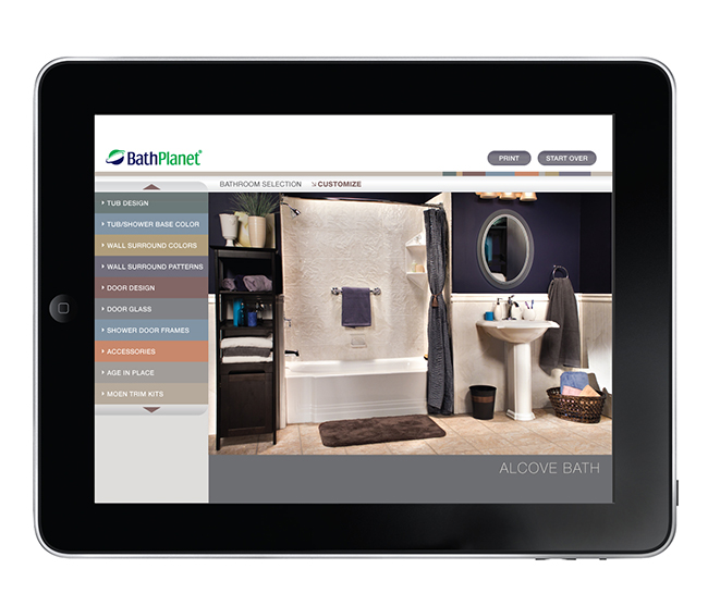 Touchscreen application design to assist customers with the design of thier ideal bathroom