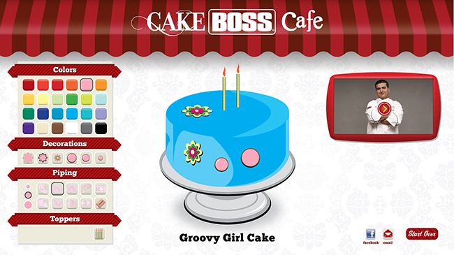 Touchscreen design for TLC channel show CakeBoss. Interactive touchscreen game located in Cake Boss stores.